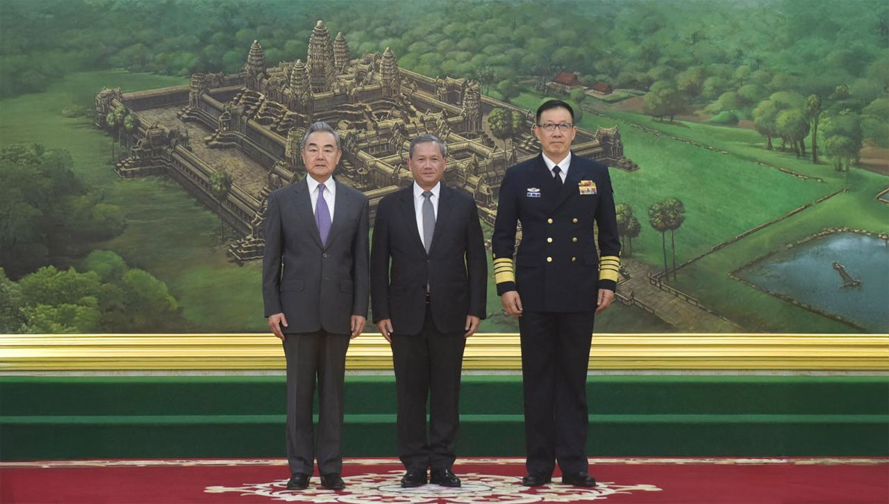 Cambodian Prime Minister Hun Manet met with Chinese Foreign Minister Wang Yi and Defense Minister Dong Jun in Phnom Penh, Cambodia.